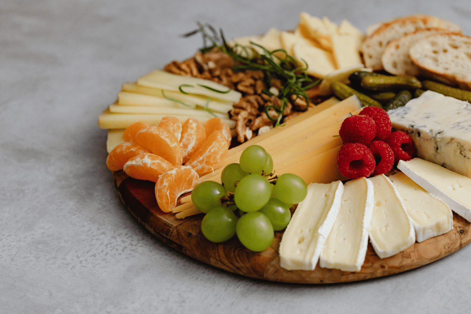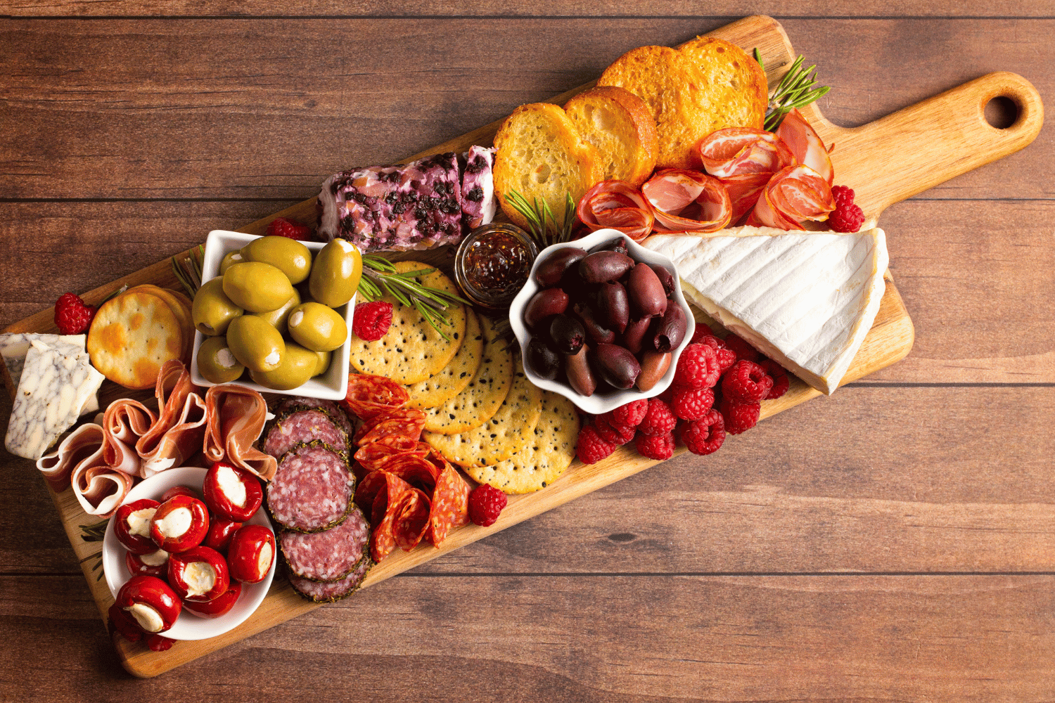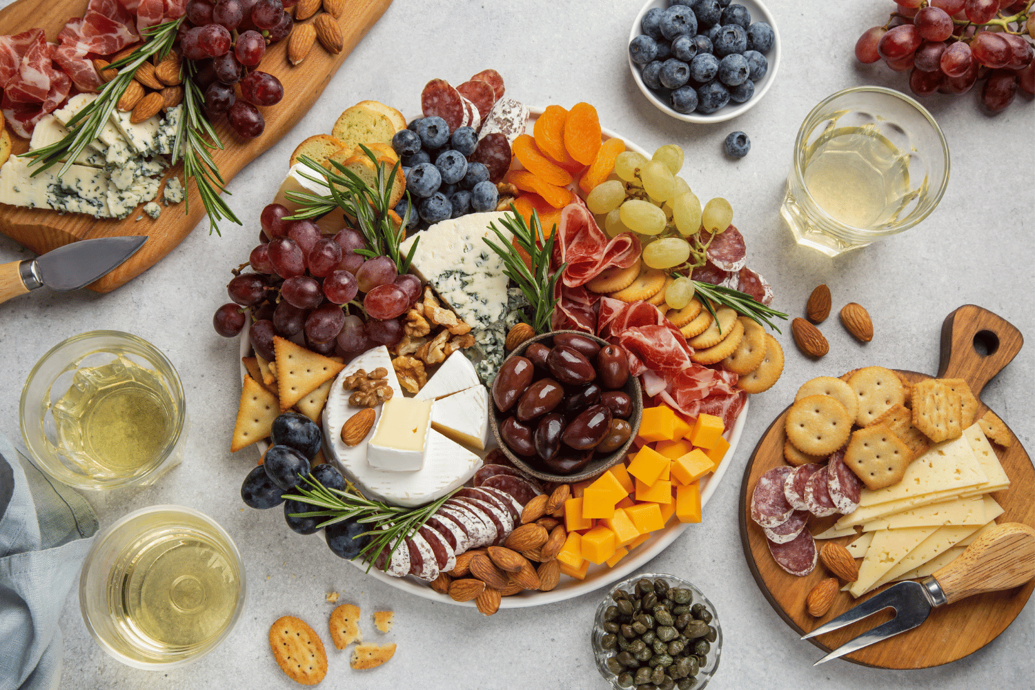 • Berries and grapes: Introduce a burst of vibrancy with red grapes. Their natural sweetness is a palate cleanser, balancing the savoury notes of cured meats and hard cheeses.