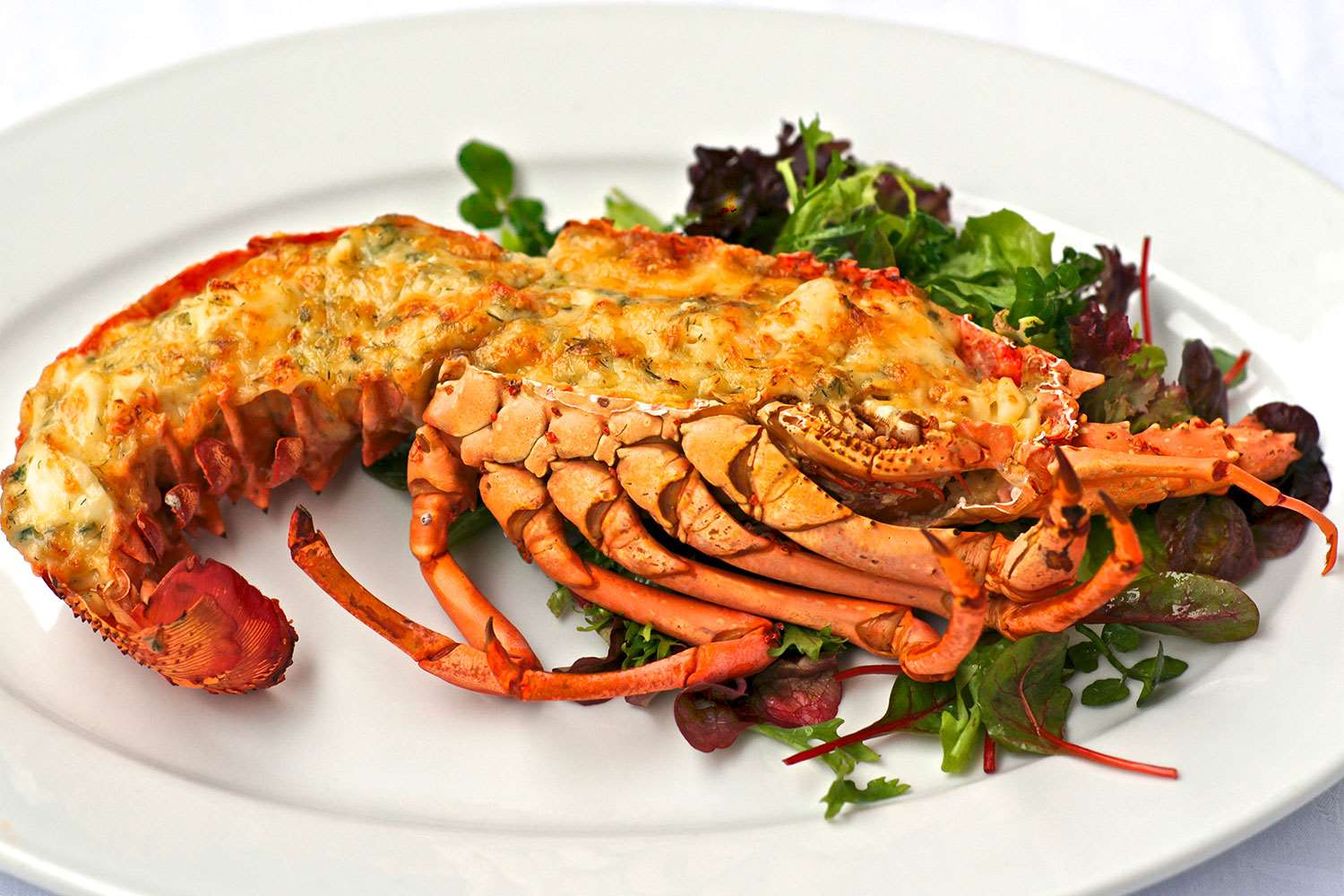 Pour a little sauce into the two halves of the rocklobster shell, stir the meat through the remaining sauce and spoon into shells, sprinkle grated cheese over the top and place under grill for 3-4 minutes until golden brown.