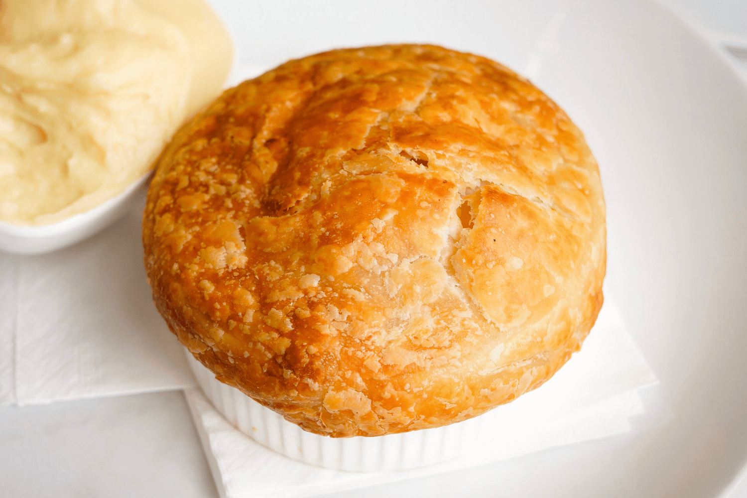 - in a Ceramic dish - Pastry top with a velouté sauce