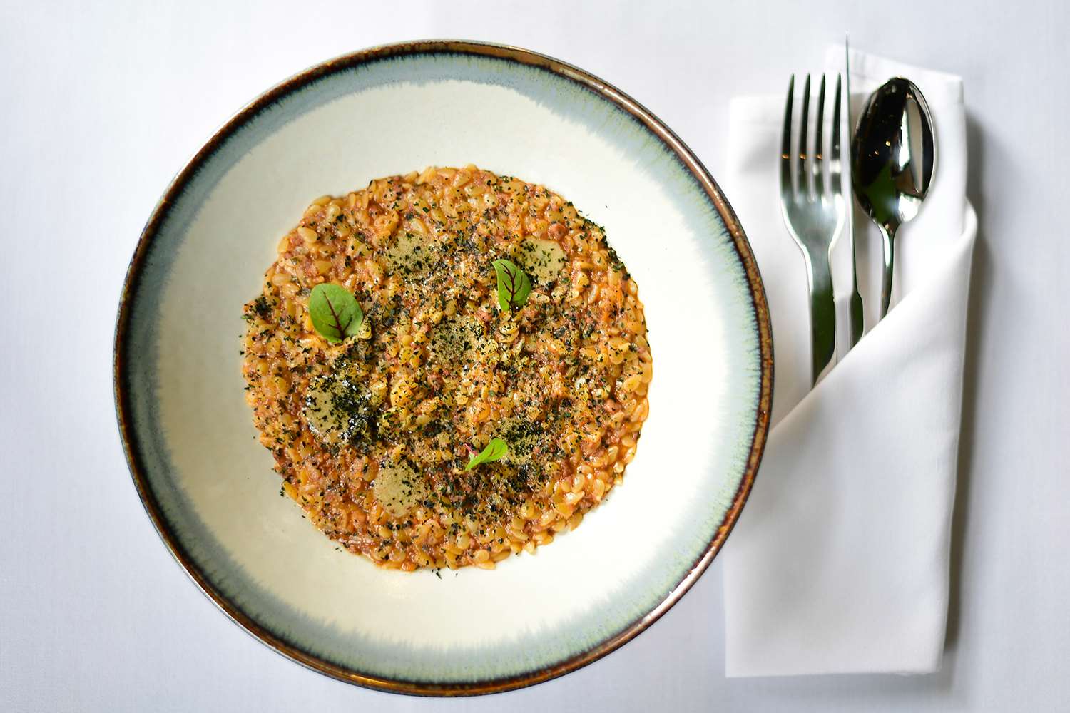 Then sautee’ with the octopus sauce till very homogenous and wavy like a risotto, finish with parmesan